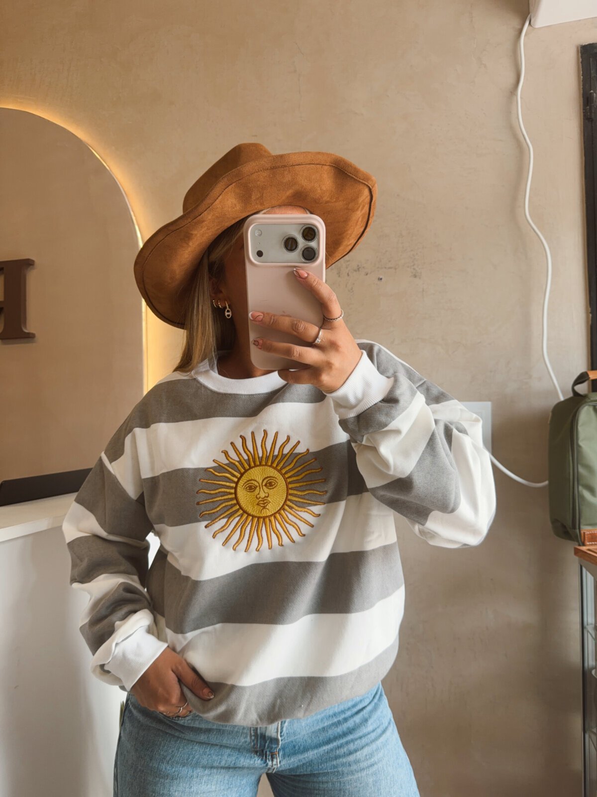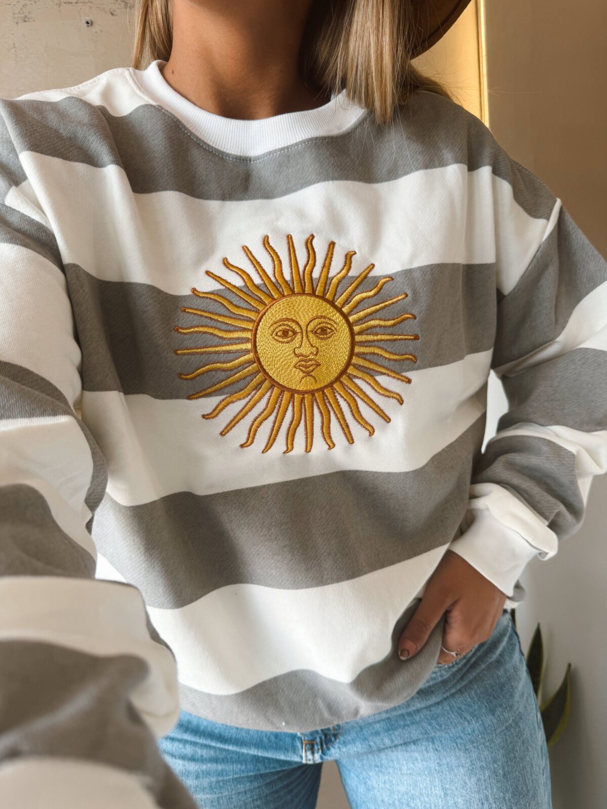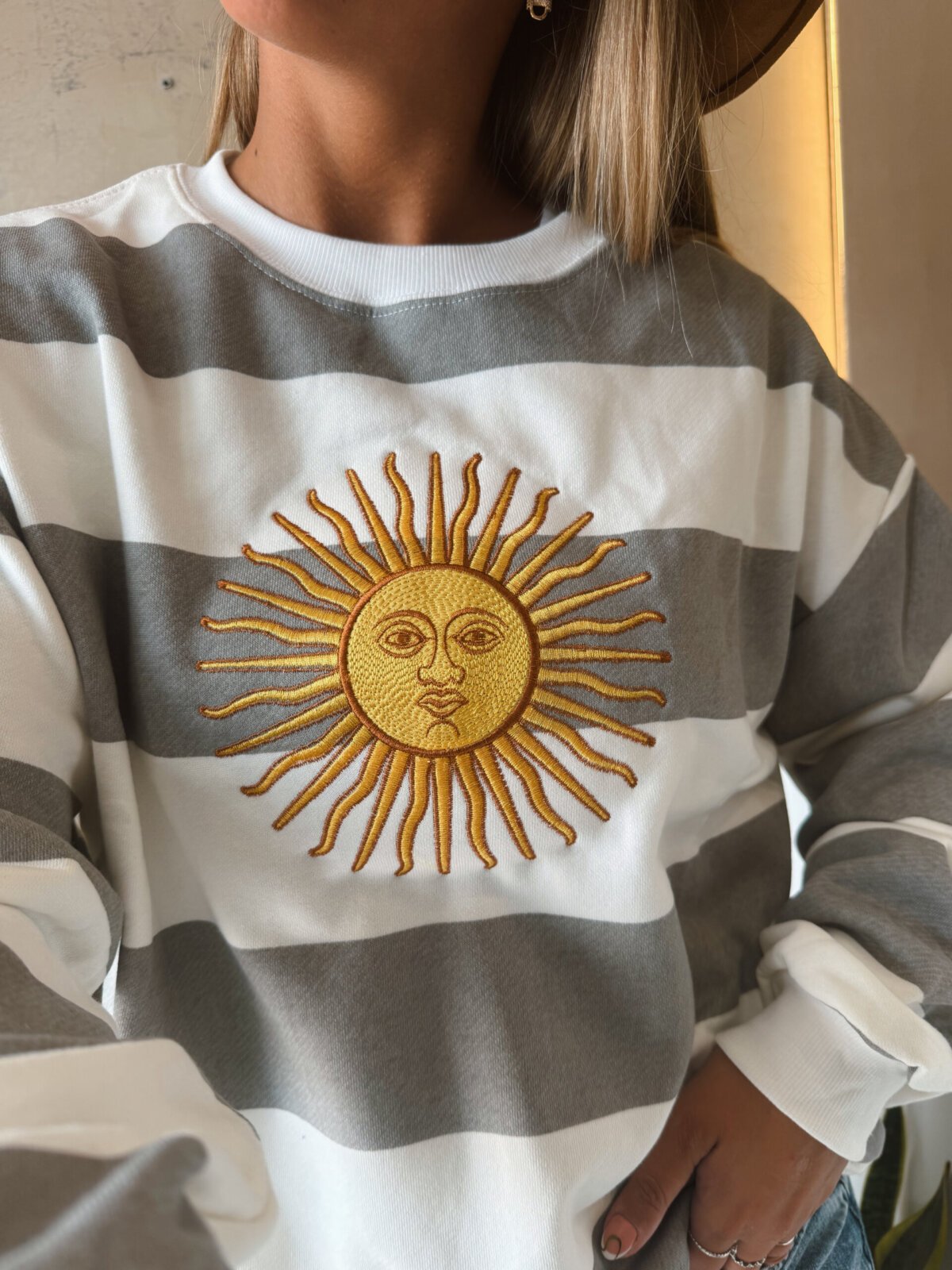 BUZO ALGODÓN RÚSTICO SOL BORDADO GRIS
