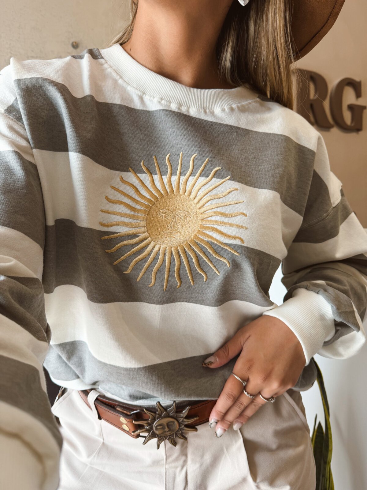 BUZO RAYADO SOL DE MAYO BORDADO GRIS