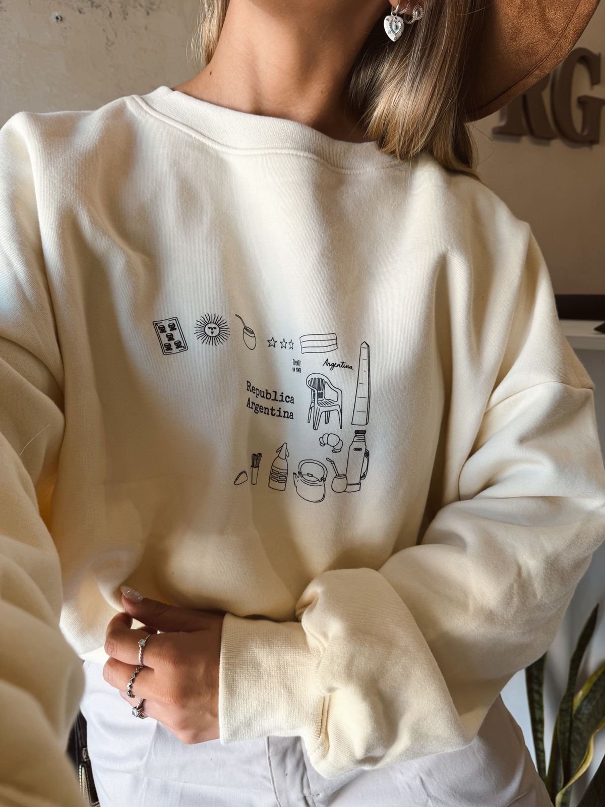 BUZO REPÚBLICA ARGENTINA FRISA CREMA OSCURO