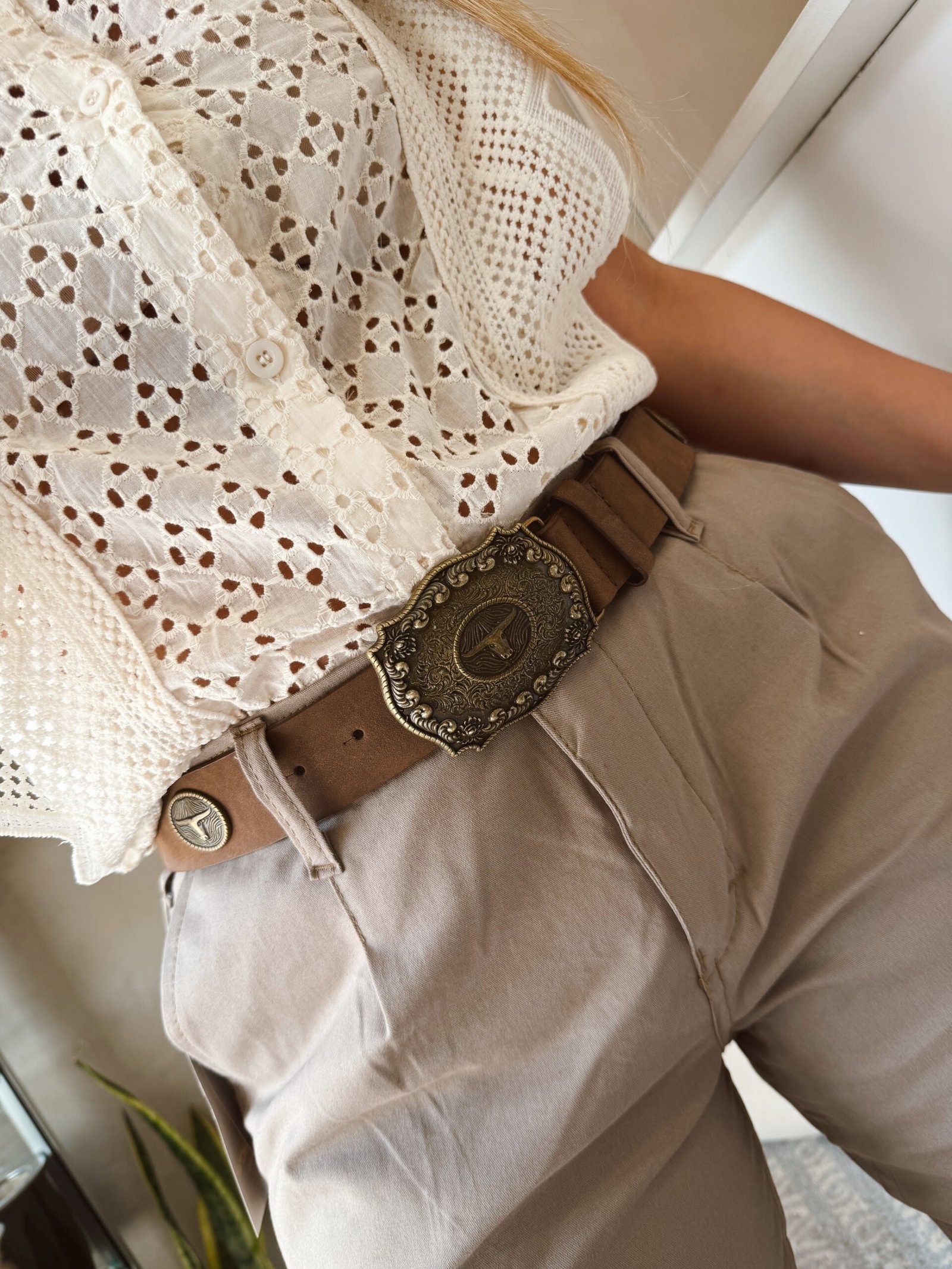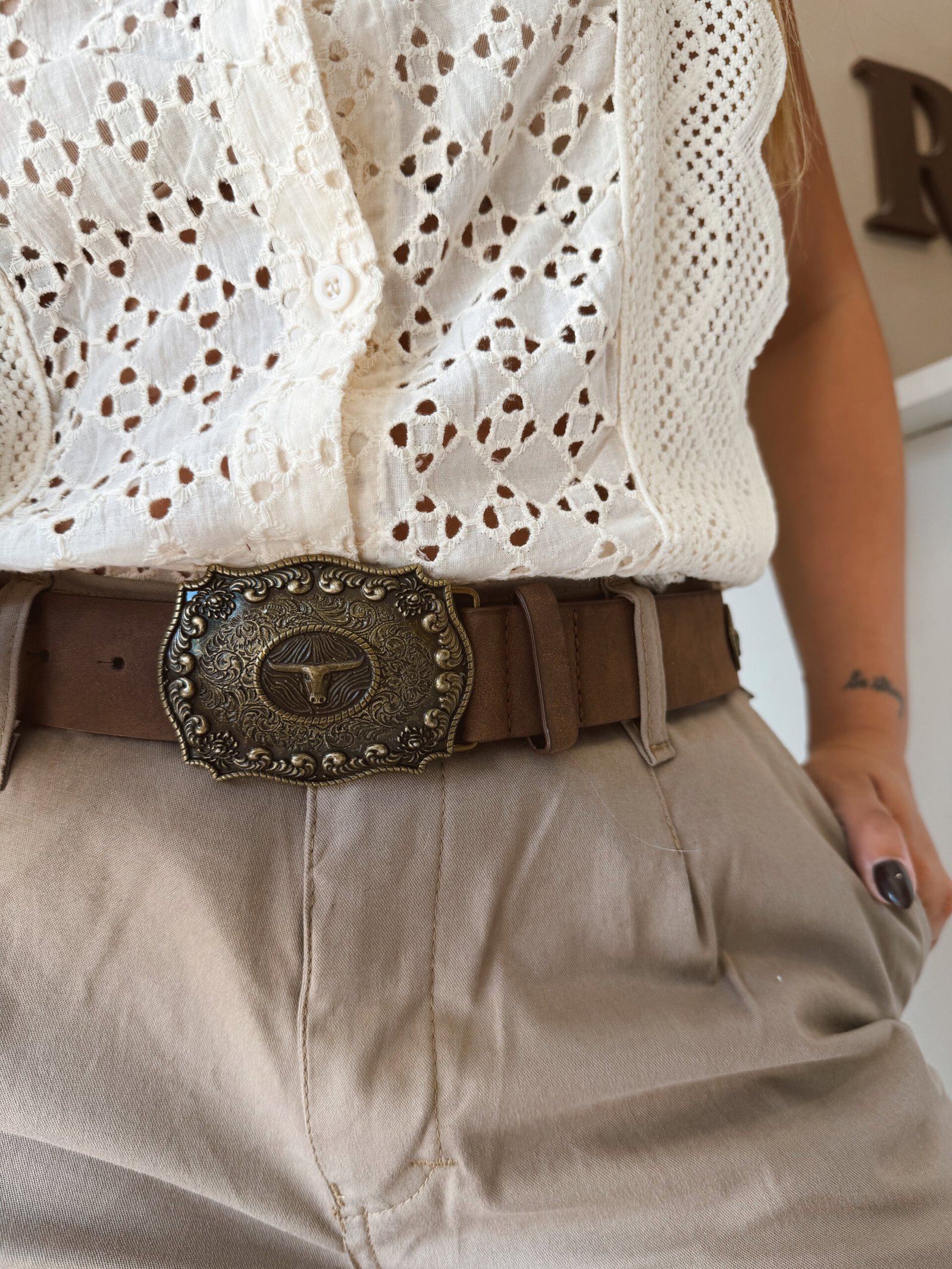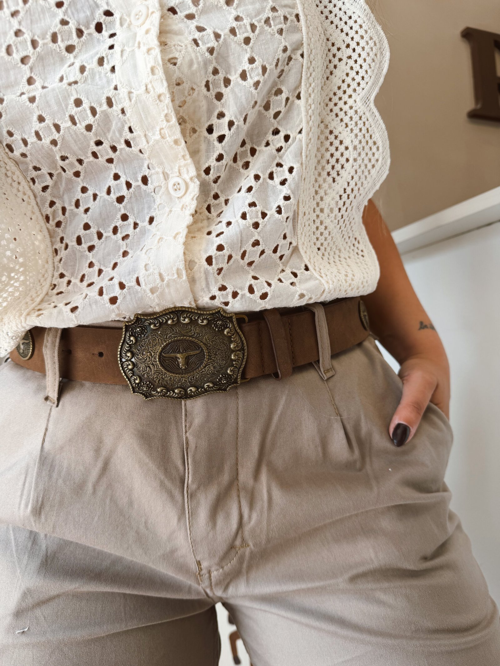 CINTO HEBILLA Y APLIQUES TORO CHOCOLATE