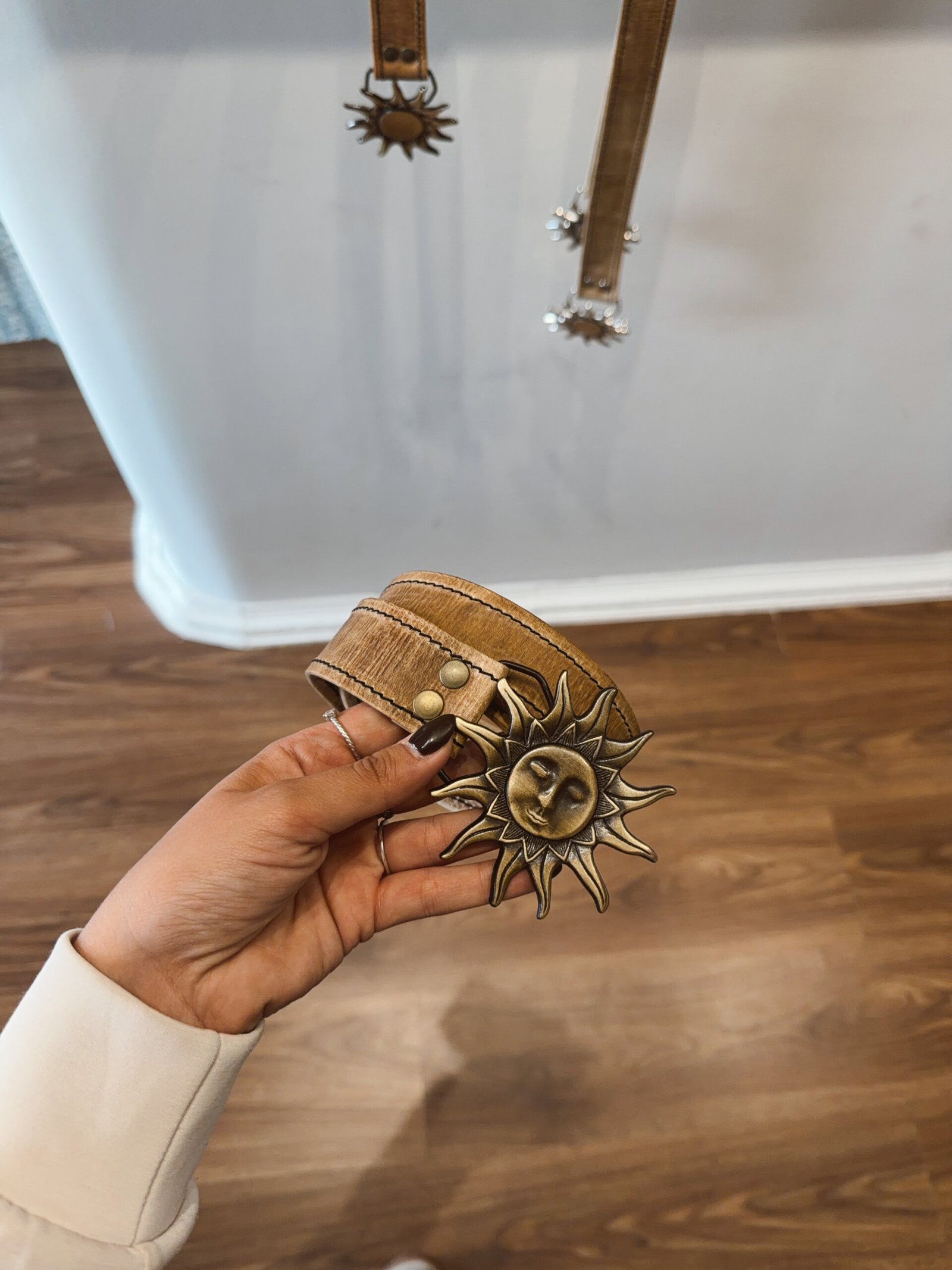 CINTO SOL CON CARA DORADO CUERO CRUDO COCIDO