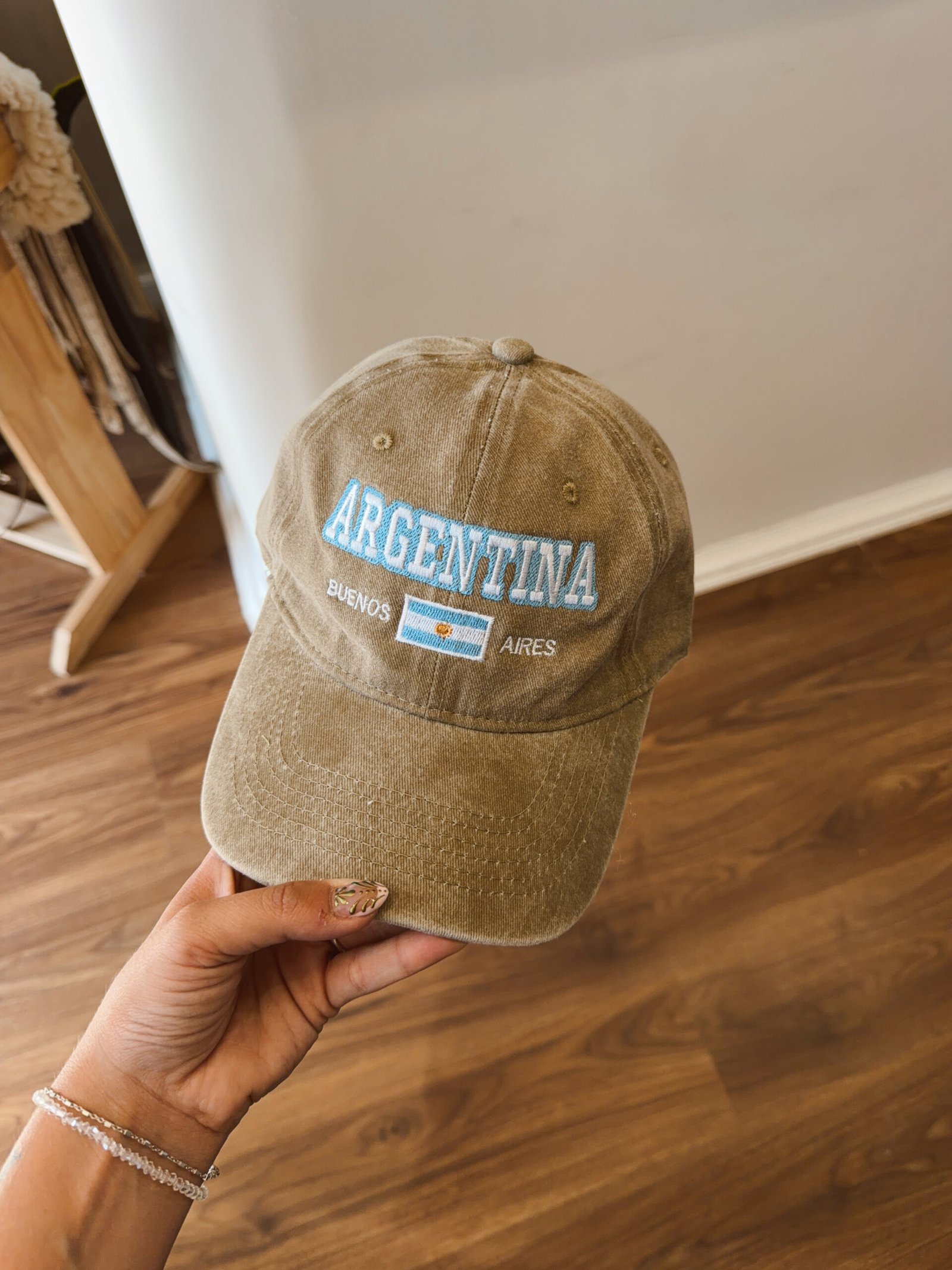 GORRA BORDADA ARG Y BANDERA BEIGE