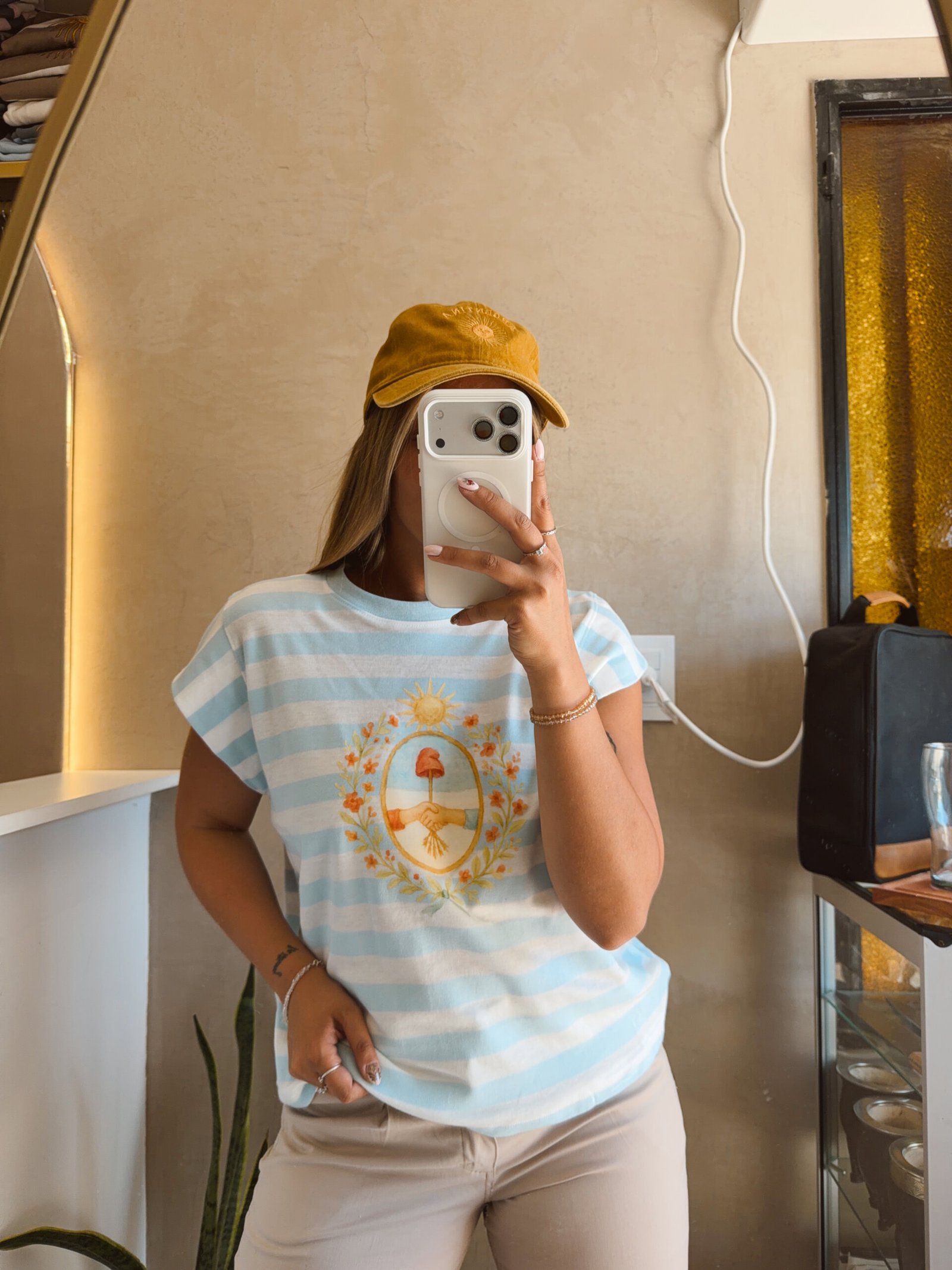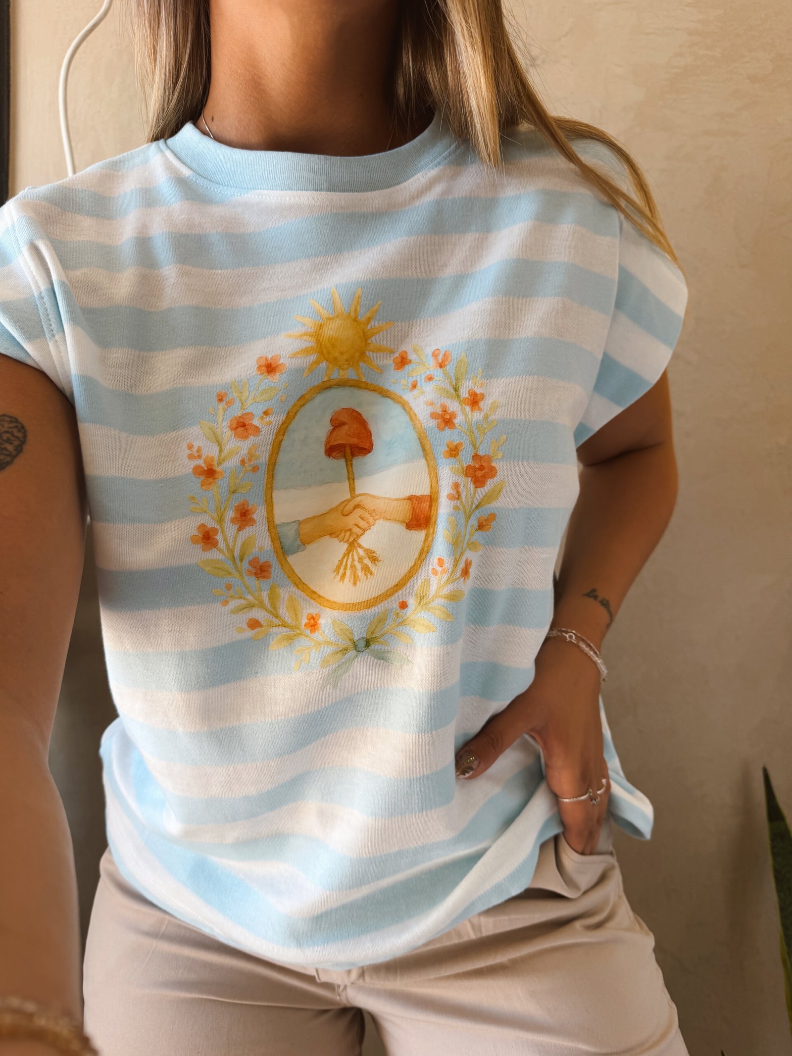 MUSCULOSA RAYADA CELESTE MANGA JAPONESA ESCUDO