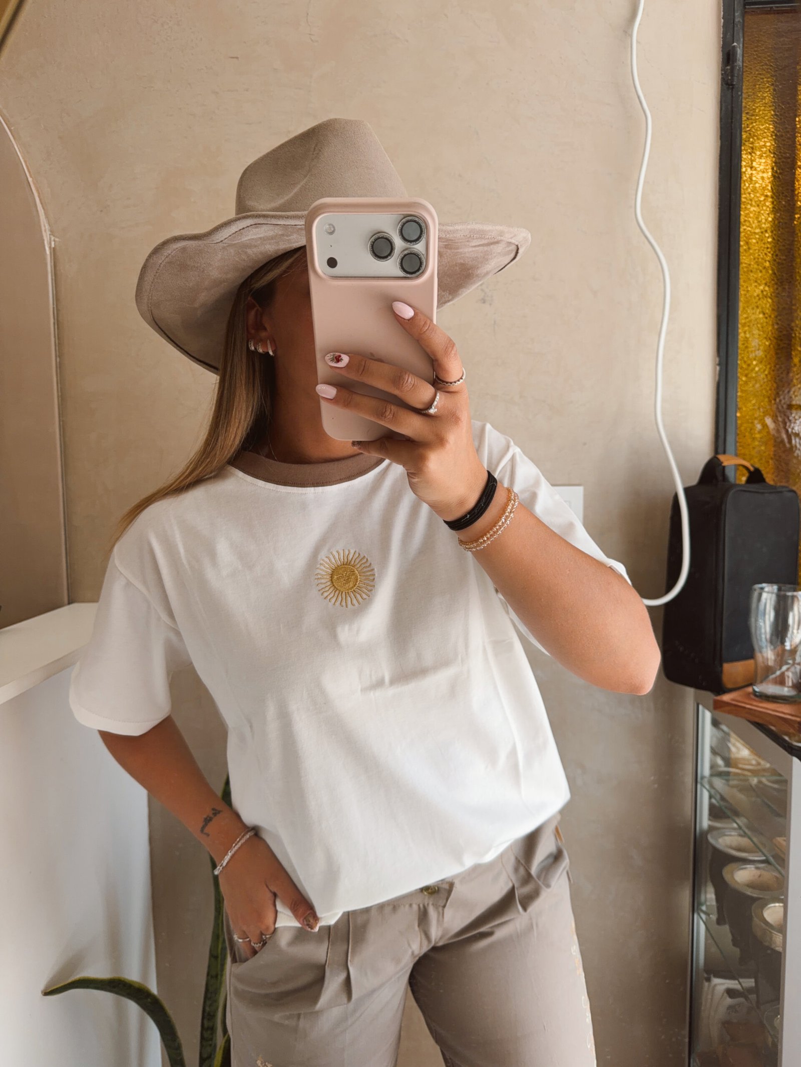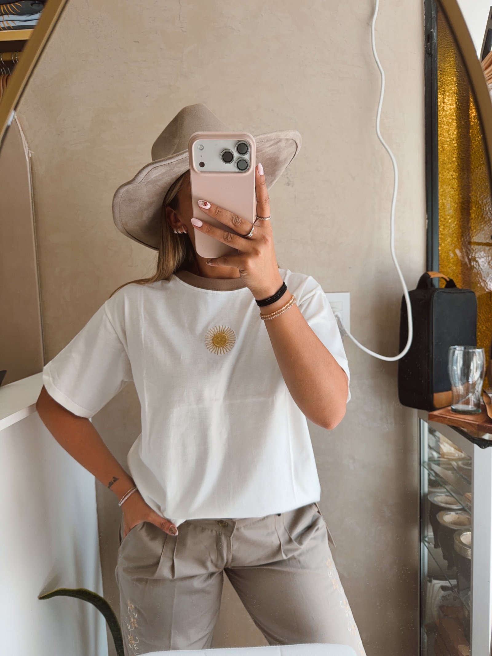 REMERA ALGODON BASICA SOL BORDADO NATURAL