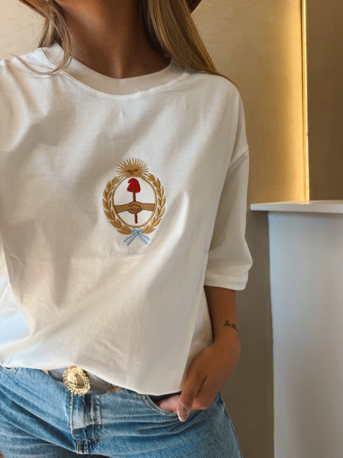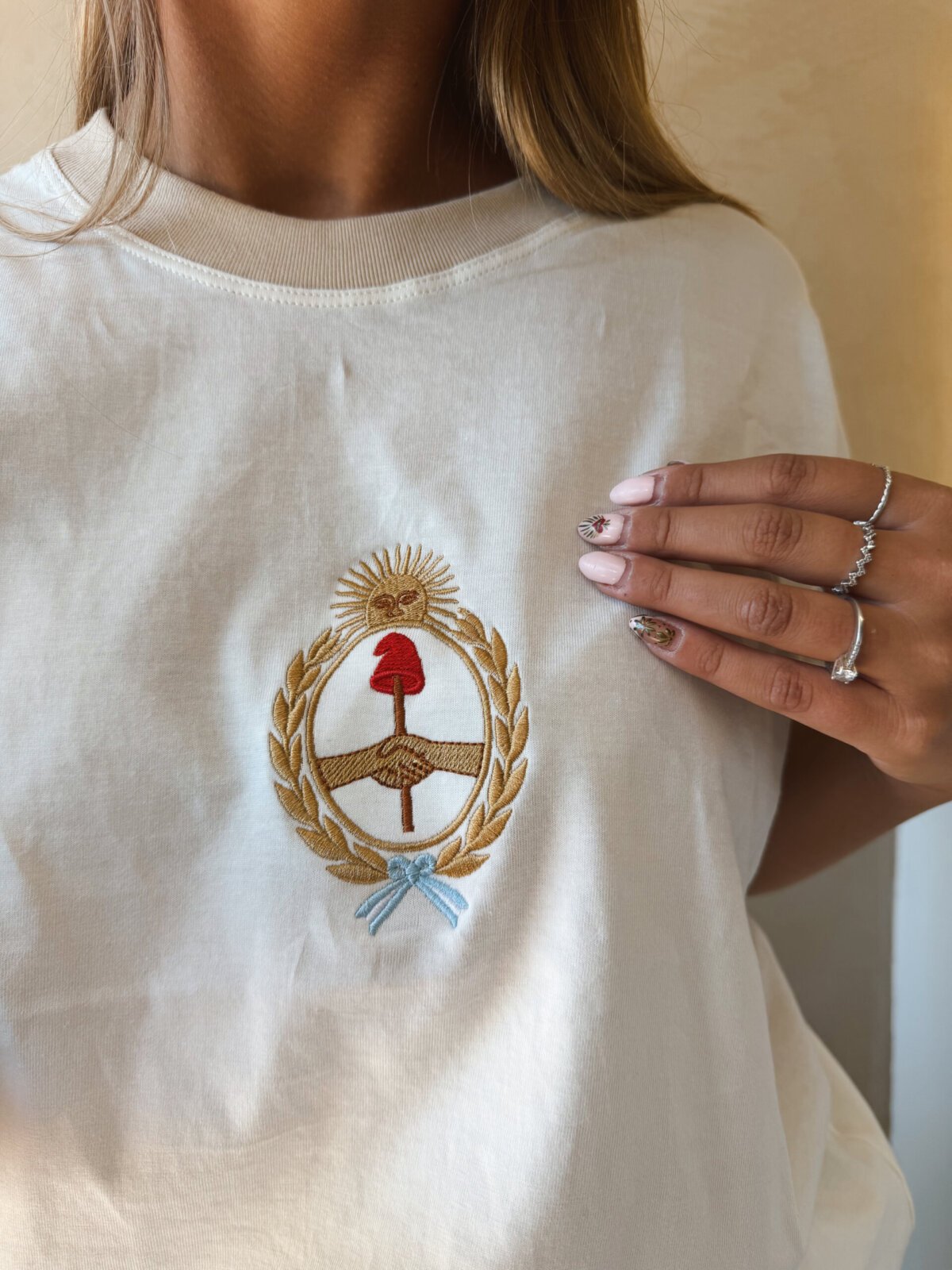 REMERA ALGODON ESCUDO BORDADO NATURAL
