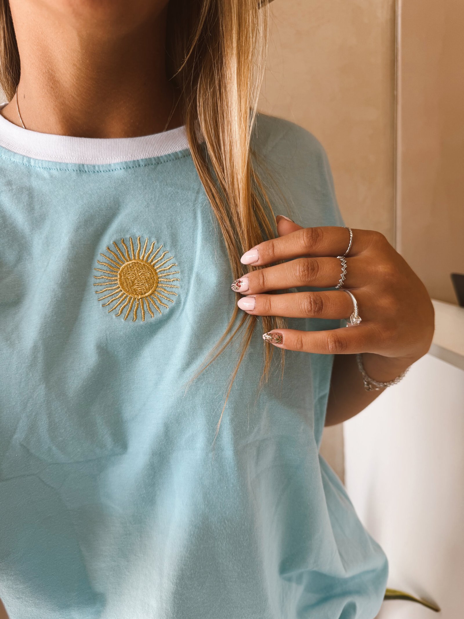 REMERA BASICA SOL BORDADO CELESTE