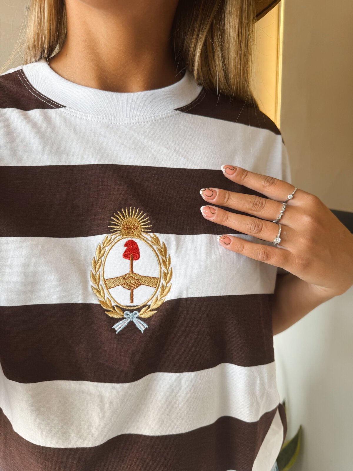 Sé el primero en valorar “REMERA RAYADA ESCUDO BORDADO MARRÓN”