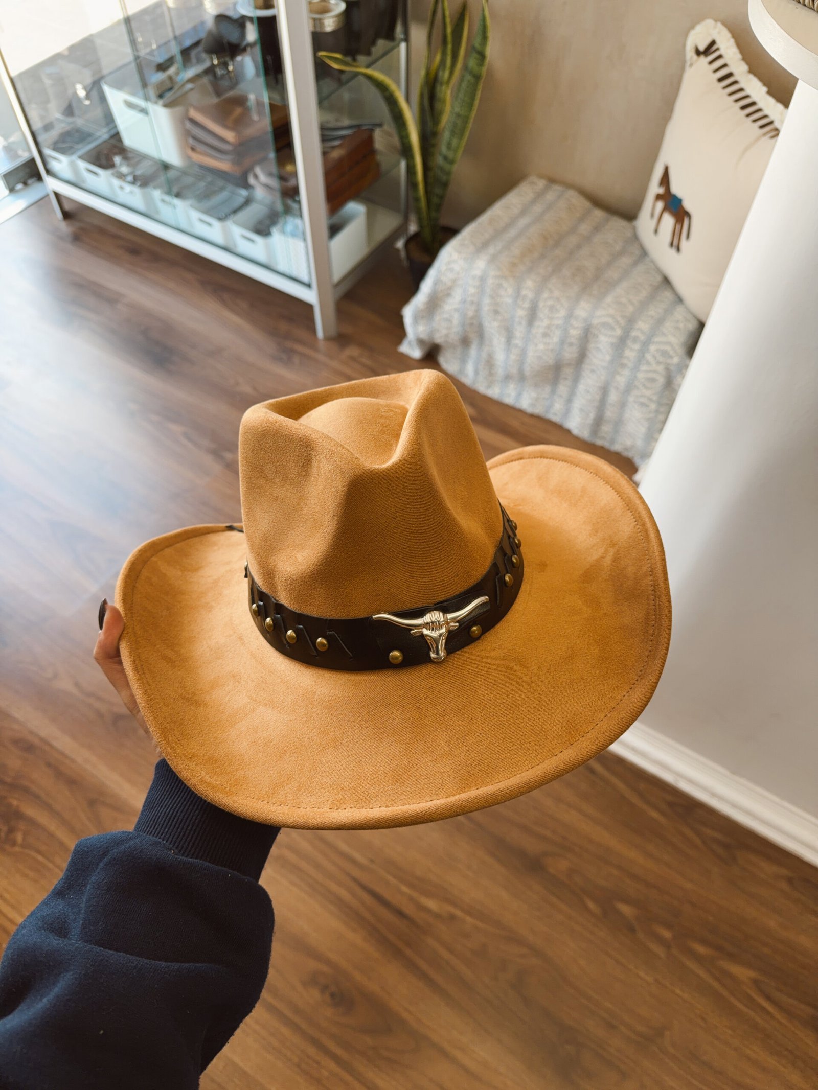 SOMBRERO GAMUZADO CINTA ECOCUERO TORO, SUELA